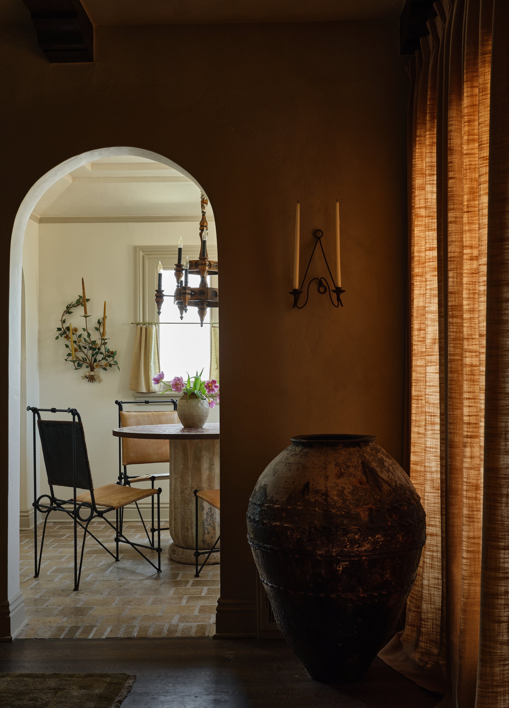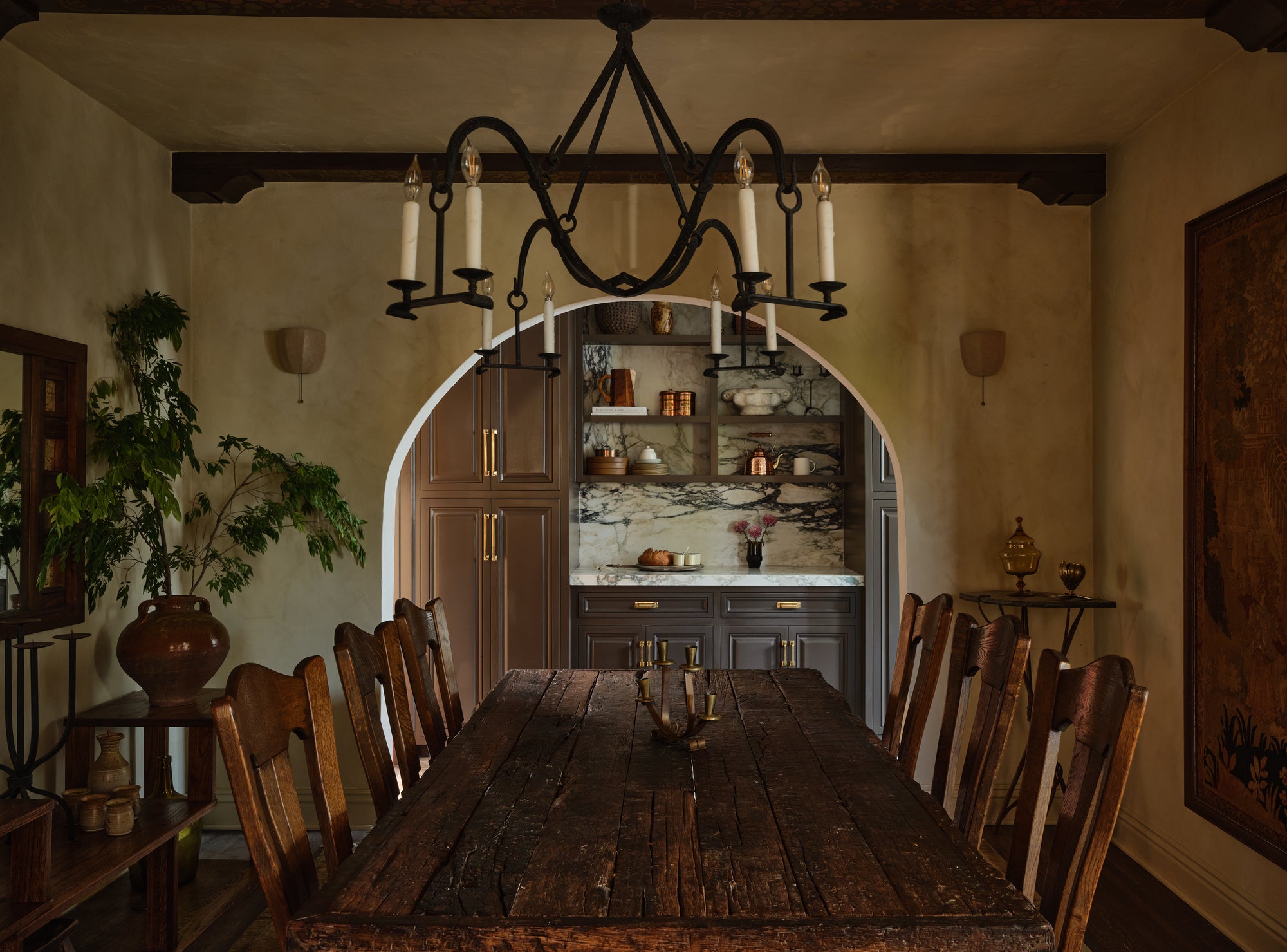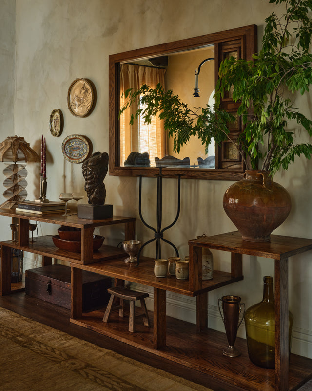 This dining room was shaped slowly and intentionally by hand, guided by the quiet elegance of my 1929 home and a reverence for age and imperfection. Soft plaster walls, timeworn oak, and thoughtfully collected pieces come together in a composition that feels grounded and intimate, where patina tells the story and nothing feels rushed or overthought. Rooted in craftsmanship and restraint, the space reflects my approach to design as layered and well loved, allowing beauty to emerge through texture and tone.